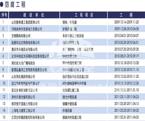 - 宏順建設(shè)核心技術(shù) 宏順建設(shè)專業(yè)防腐各種水塔防腐,儲(chǔ)油罐防腐,管道防腐,吊機(jī)防腐,龍門吊防腐,水泥筒倉防腐工程,有多年的成功經(jīng)驗(yàn),施工業(yè)績(jī)遍布全國(guó)各地... 了解詳情